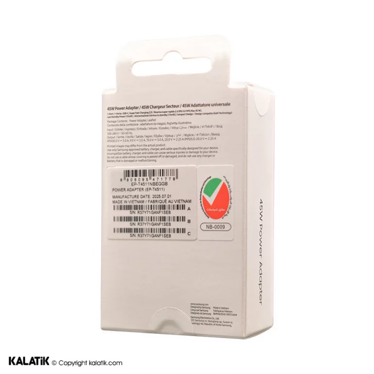 شارژر دیواری 45W سامسونگ مدل EP-T4511 فست PD سه پین دارای NFC-شارسل
