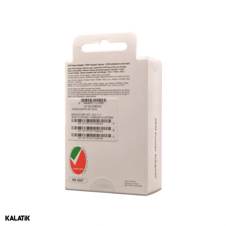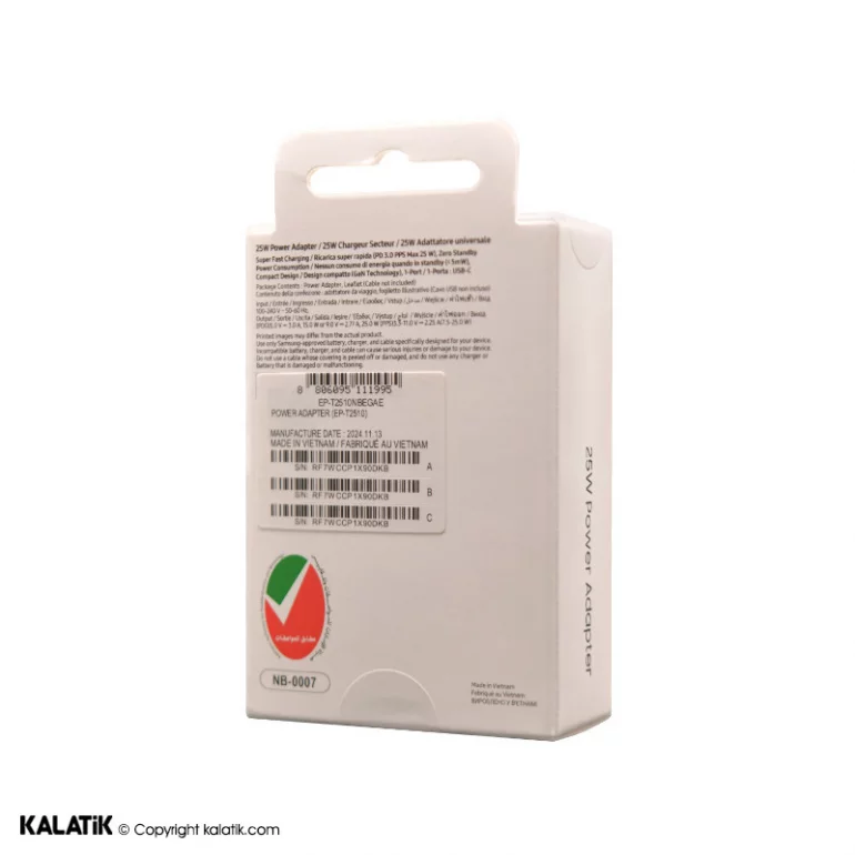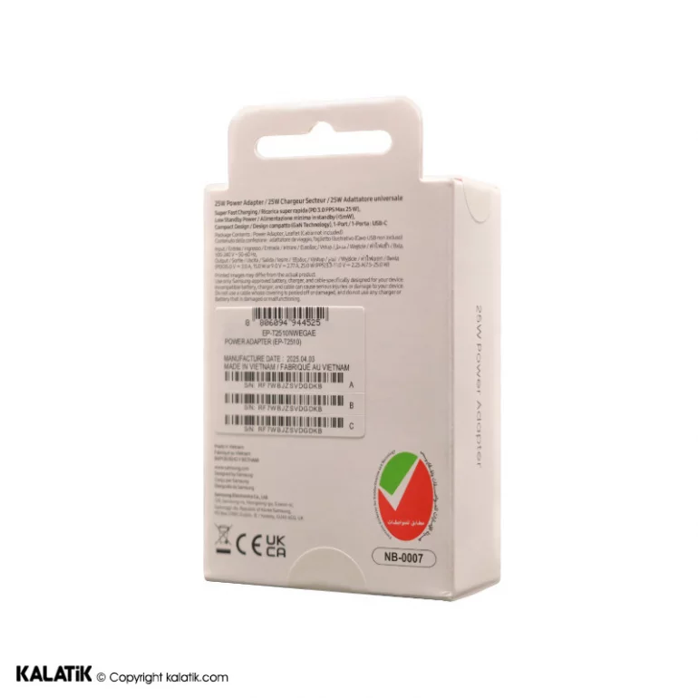 شارژر دیواری 25W سامسونگ مدل EP-T2510 فست PD سه پین دارای NFC-شارسل